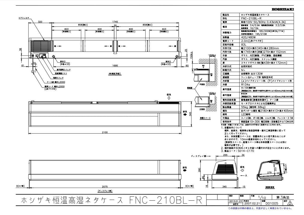 【ホシザキ】恒温高湿ネタケース FNC-210CL-R 幅2100×奥行345×高さ280(mm) 単相100