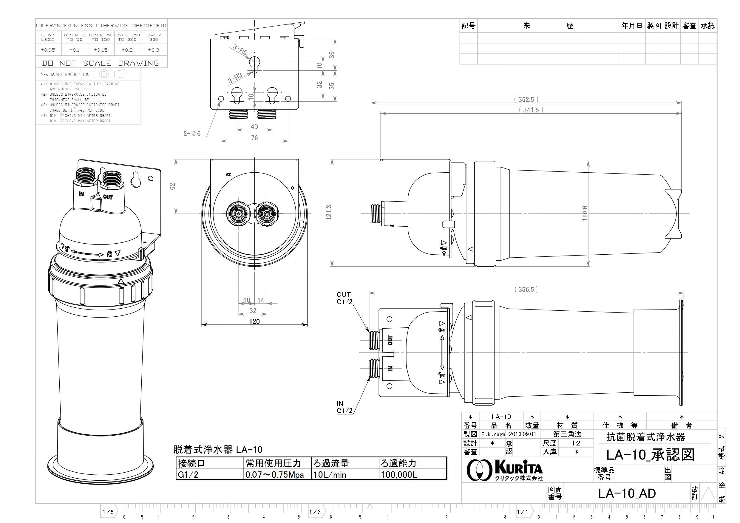 【クリタック】浄水器 本体+カートリッジ LA-10 直径120×高さ353mm
