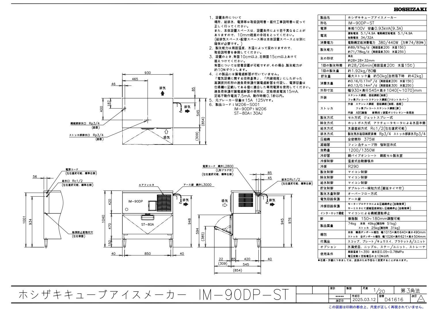 IM-90DP-ST【ホシザキ】自然冷媒製氷機キューブアイスメーカー空冷式 スタックオンタイプ 製氷能力90kg幅930×奥行545×高さ1040mm単相100V