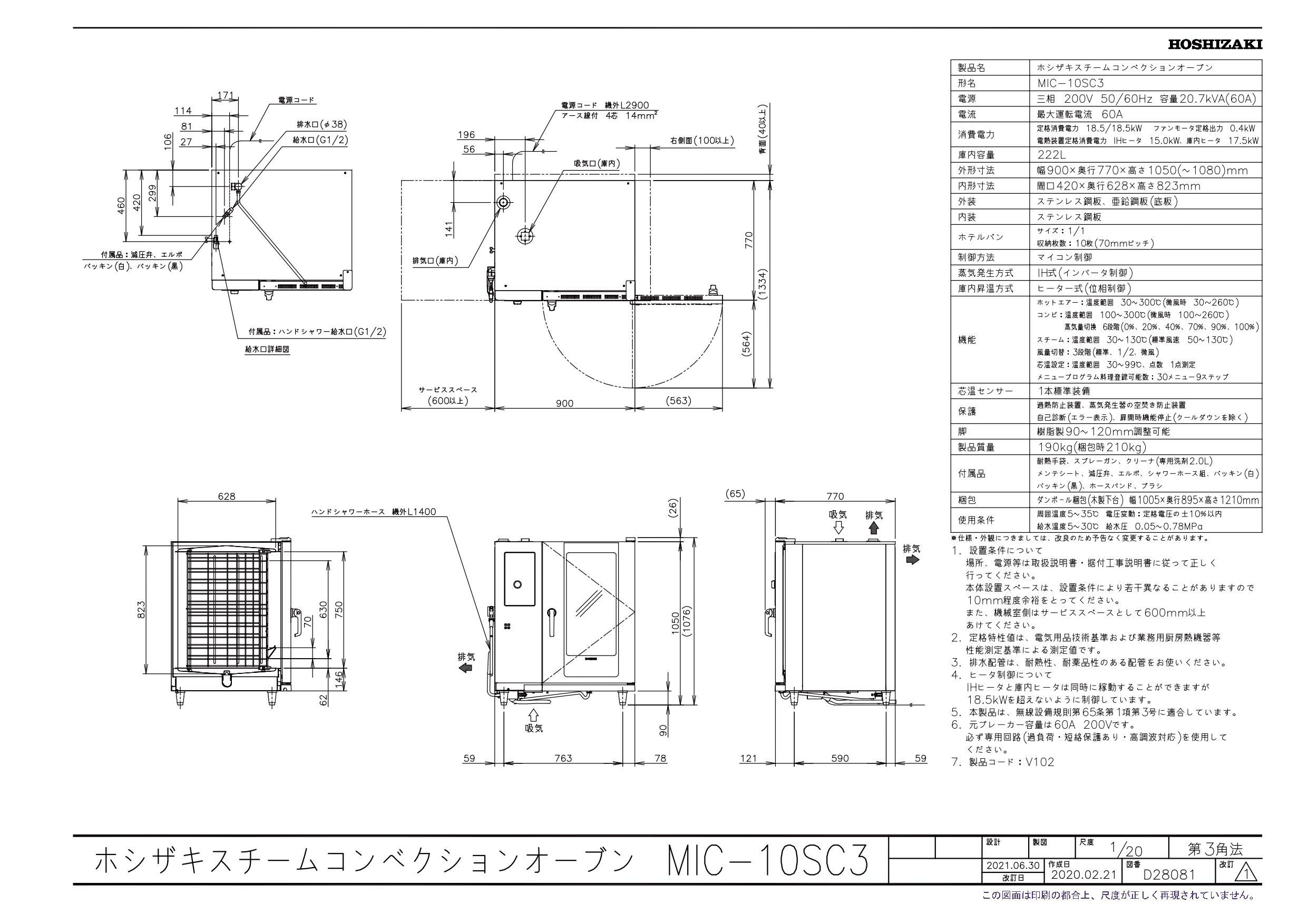商品名:スチームコンベクションオーブン MIC-10SC3 900×770×1050(mm) 三相200V