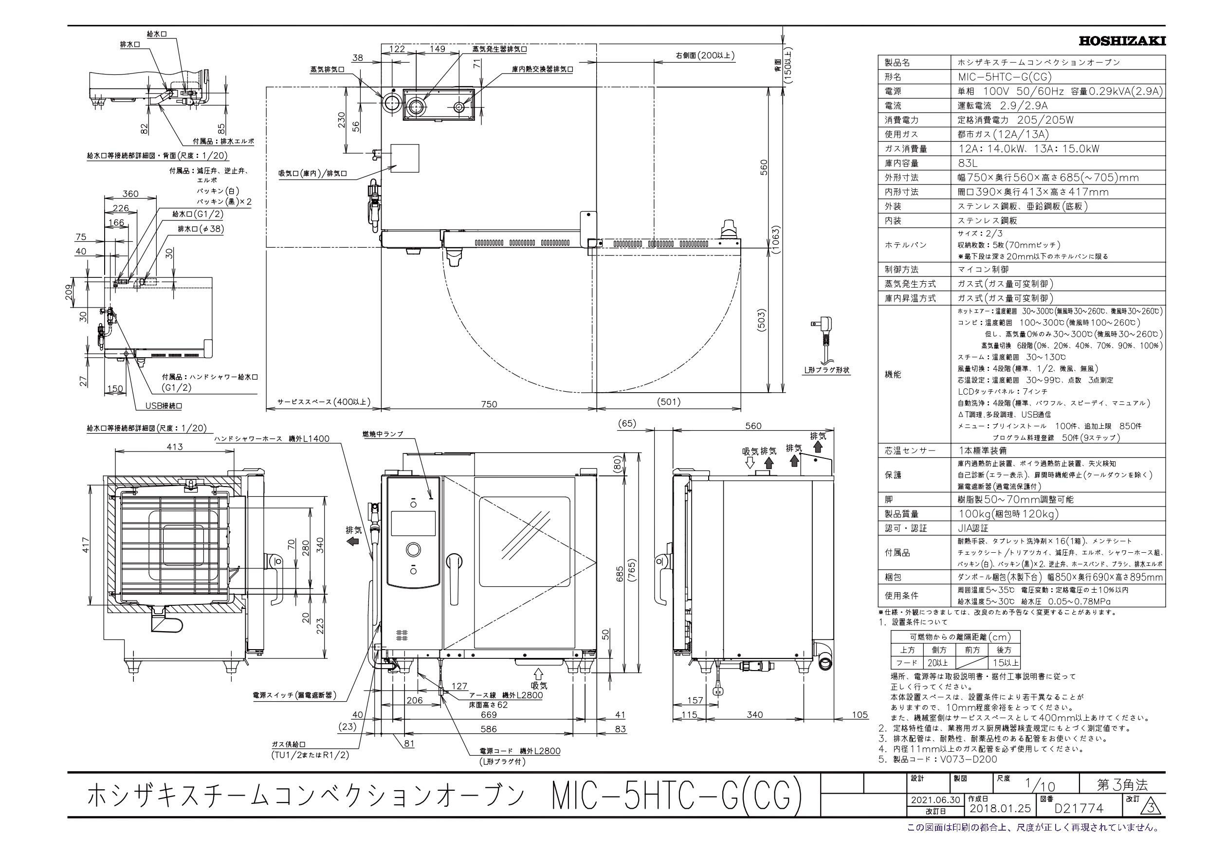 商品名:スチームコンベクションオーブン MIC-5HTC-G 900×560×685(mm) 単相100V
