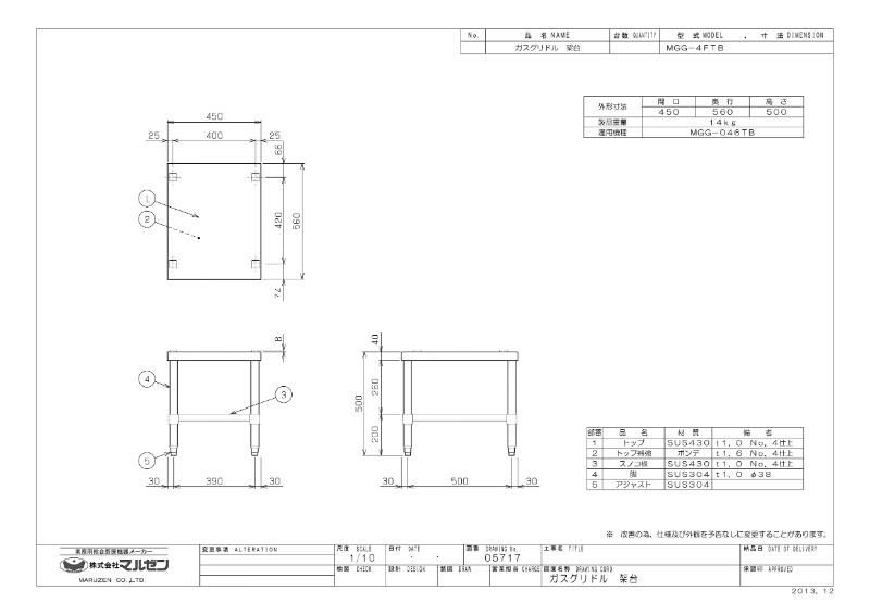 商品名:ガスグリドル MGG-046TB専用架台 W450×D560×H500