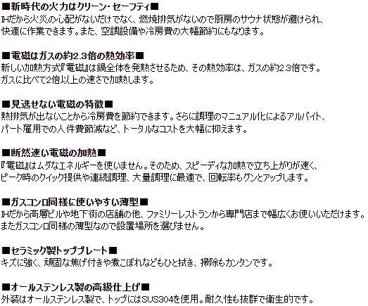 IHだから火災の心配がないだけでなく、燃焼排気がないので厨房のサウナ状態が避けられ、