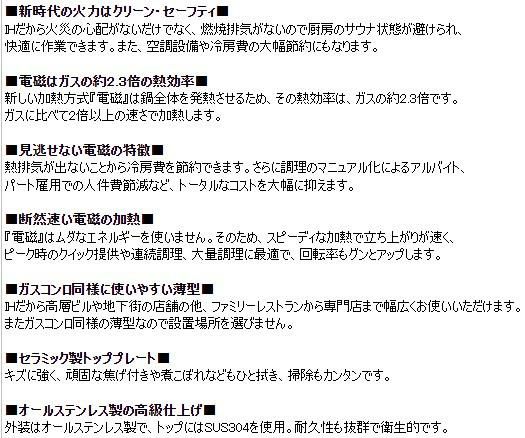 IHだから火災の心配がないだけでなく、燃焼排気がないので厨房のサウナ状態が避けられ、