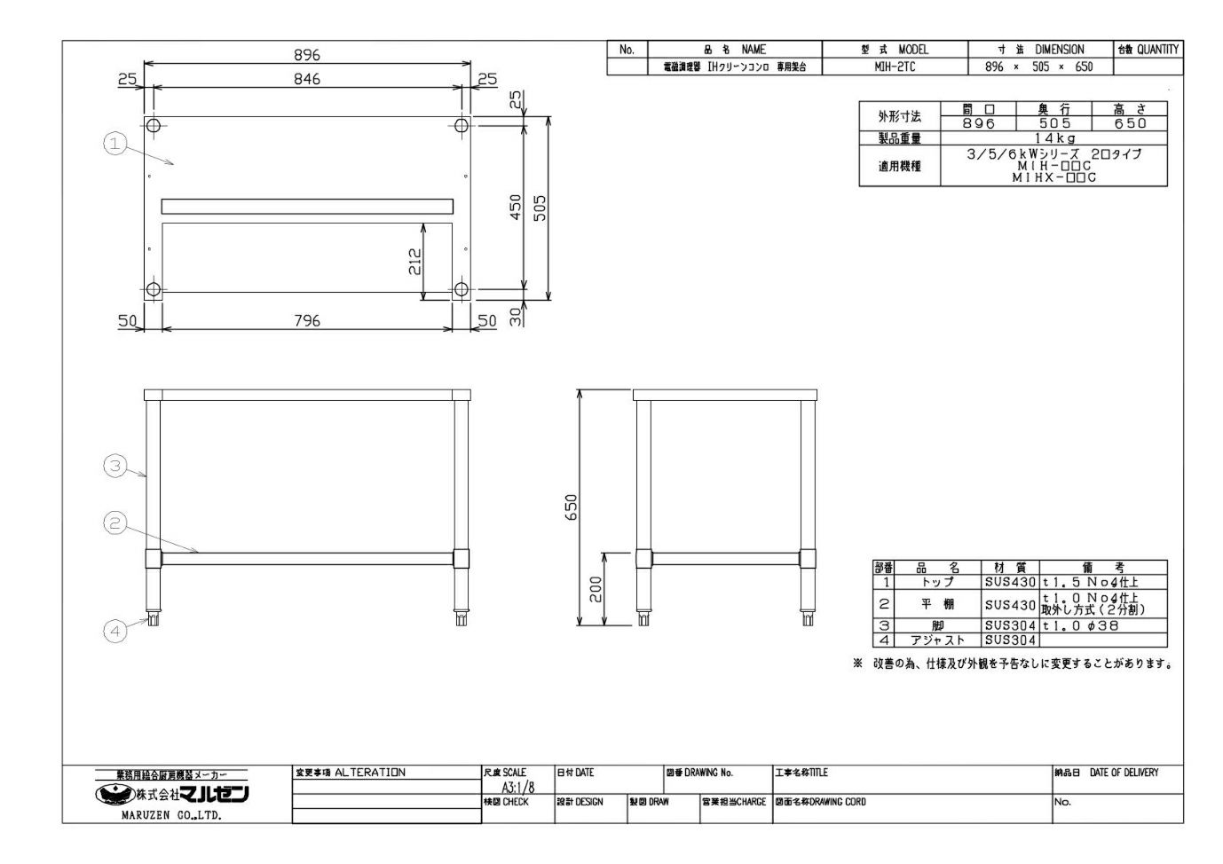 商品名:マルゼン電磁調理器 IHクリーンコンロ卓上型2口タイプ専用架台