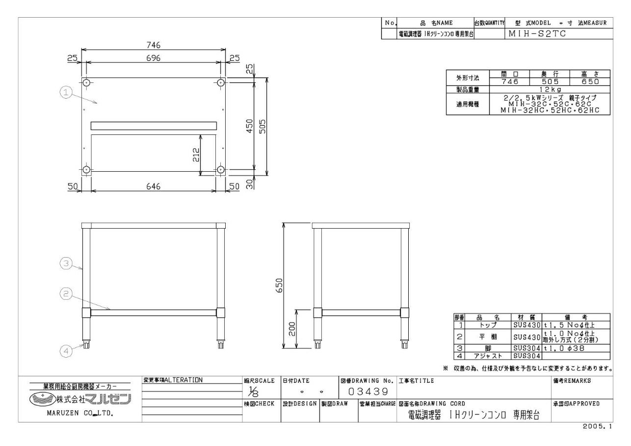 商品名:マルゼン電磁調理器 IHクリーンコンロ卓上型2口タイプ専用架台