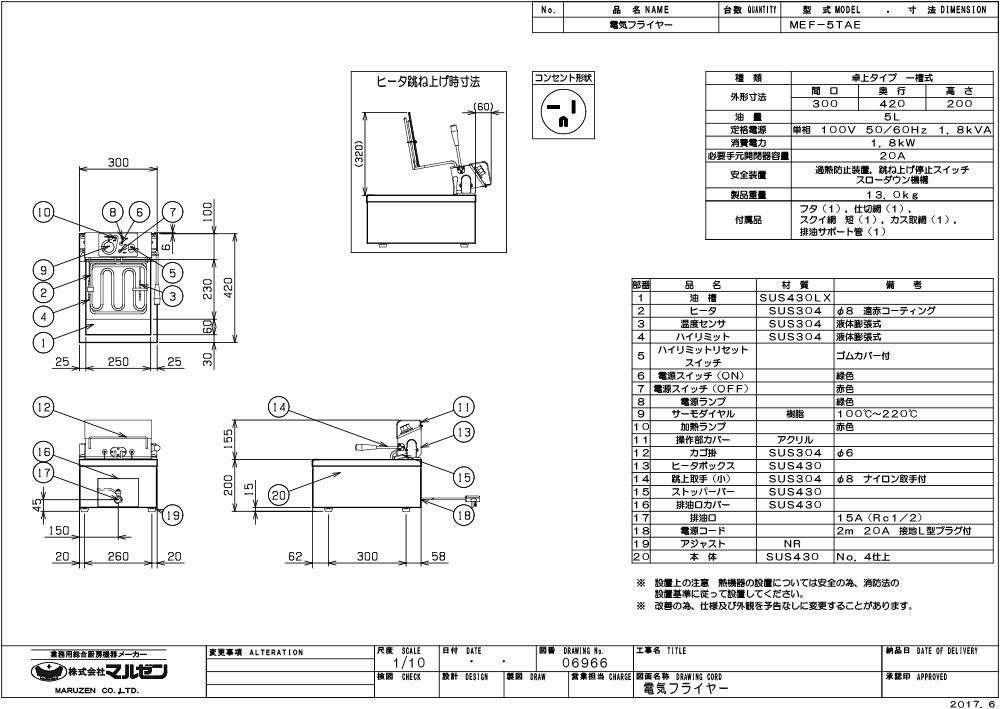 MEF-5TAE 【マルゼン】 電気フライヤー 5L 卓上タイプ 幅300×奥行420×高さ200