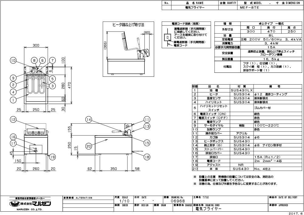 MEF-8TE 【マルゼン】 電気フライヤー 8L 卓上タイプ 幅300×奥行470×高さ250