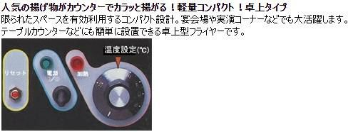 テーブルカウンターなどにも簡単に設置できる卓上型フライヤーです。