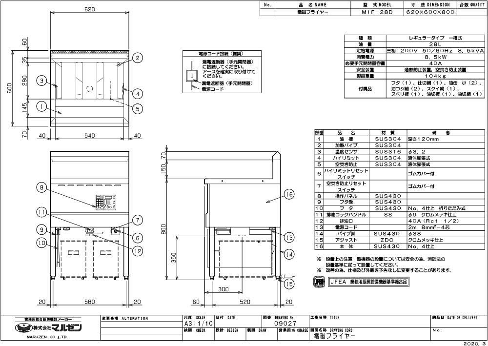 MIF-28D 【マルゼン】 電磁フライヤー 28L 幅620×奥行600×高さ800
