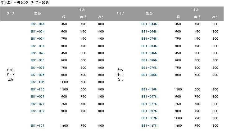 | バック ガード あり | BS1-044 | 450 | 450 | 800 | バック ガード なし | BS1-044N | 450 | 450 | 800 |