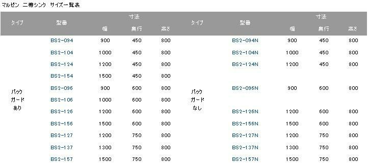 マルゼン 二槽シンク サイズ一覧表