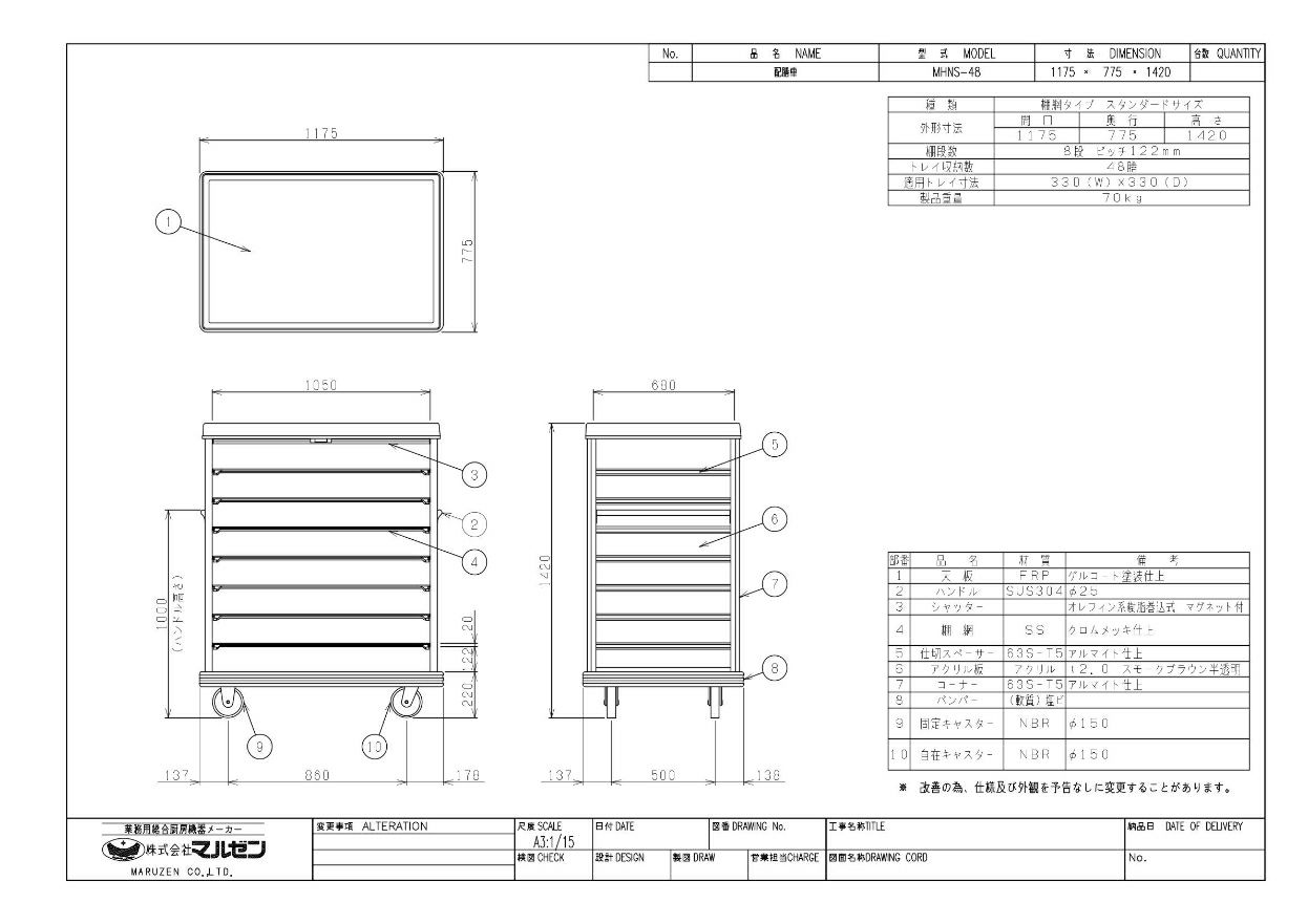 ●トレイ収納枚数:48枚 ※適用トレイ寸法330×330