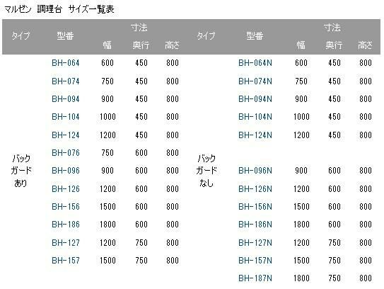| バック ガード あり | BH-064 | 600 | 450 | 800 | バック ガード なし | BH-064N | 600 | 450 | 800 |