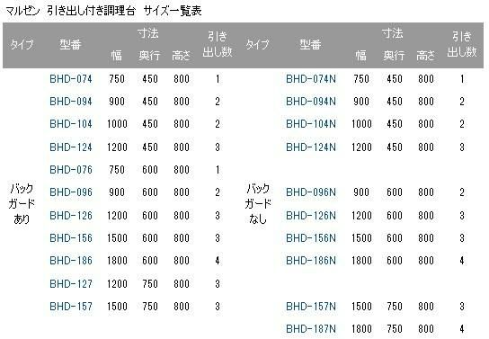 | バック ガード あり | BHD-074 | 750 | 450 | 800 | 1 | バック ガード なし | BHD-074N | 750 | 450 | 800 | 1 |