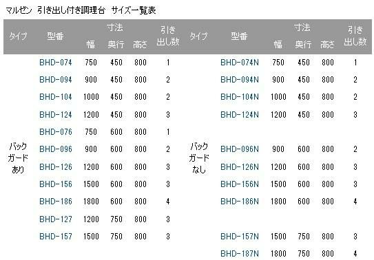 | バック ガード あり | BHD-074 | 750 | 450 | 800 | 1 | バック ガード なし | BHD-074N | 750 | 450 | 800 | 1 |