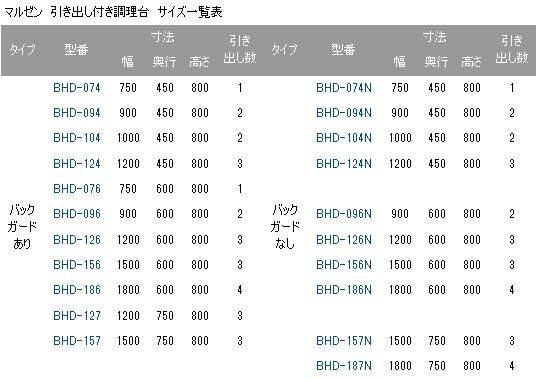 | バック ガード あり | BHD-074 | 750 | 450 | 800 | 1 | バック ガード なし | BHD-074N | 750 | 450 | 800 | 1 |