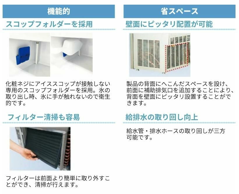 化粧ネジにアイススコップが接触しない専用のスコップフォルダーを採用。氷の取り出し時、氷に手が触れないので衛生的です。