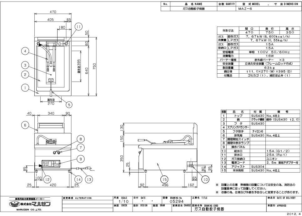 商品名:ガス自動餃子焼器 MAZ-6B