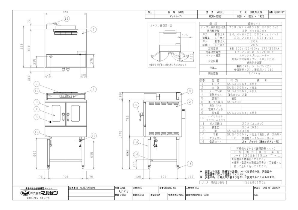 【マルゼン】コンベクションオーブン ビッグオーブン MCO-10SB(旧:MCO-10S) 幅880×奥行885×高さ1470