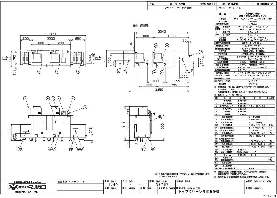 MDCF2B-6GL 【マルゼン】フライトコンベア洗浄機 幅3650×奥行900×高さ1910 三相200V 50/60Hz