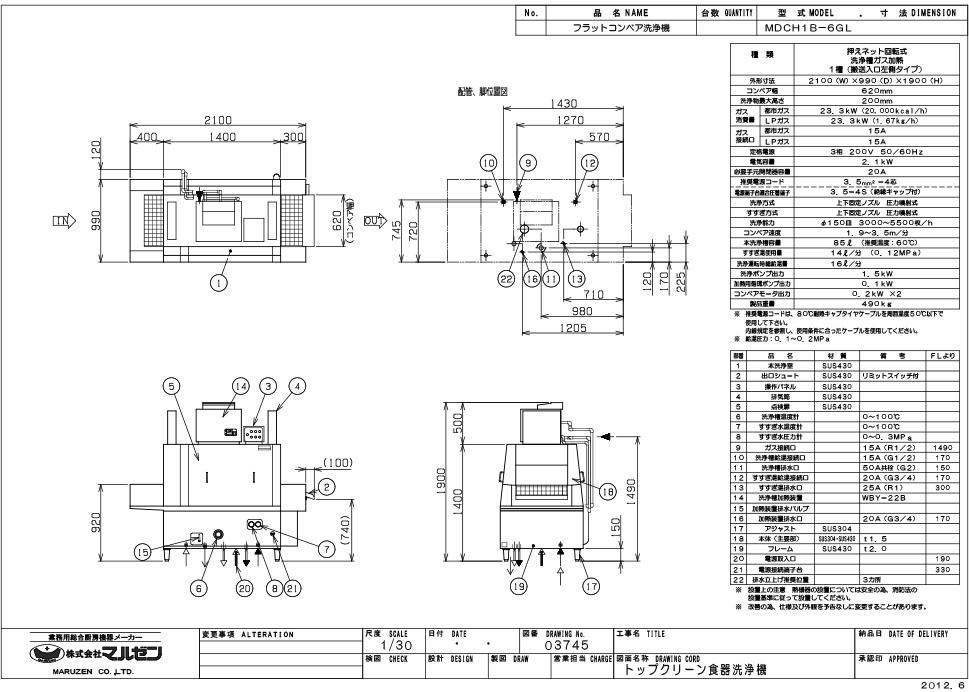 MDCH1B-6GL 【マルゼン】フラットコンベア洗浄機 幅2100×奥行990×高さ1900 三相200V 50/60Hz