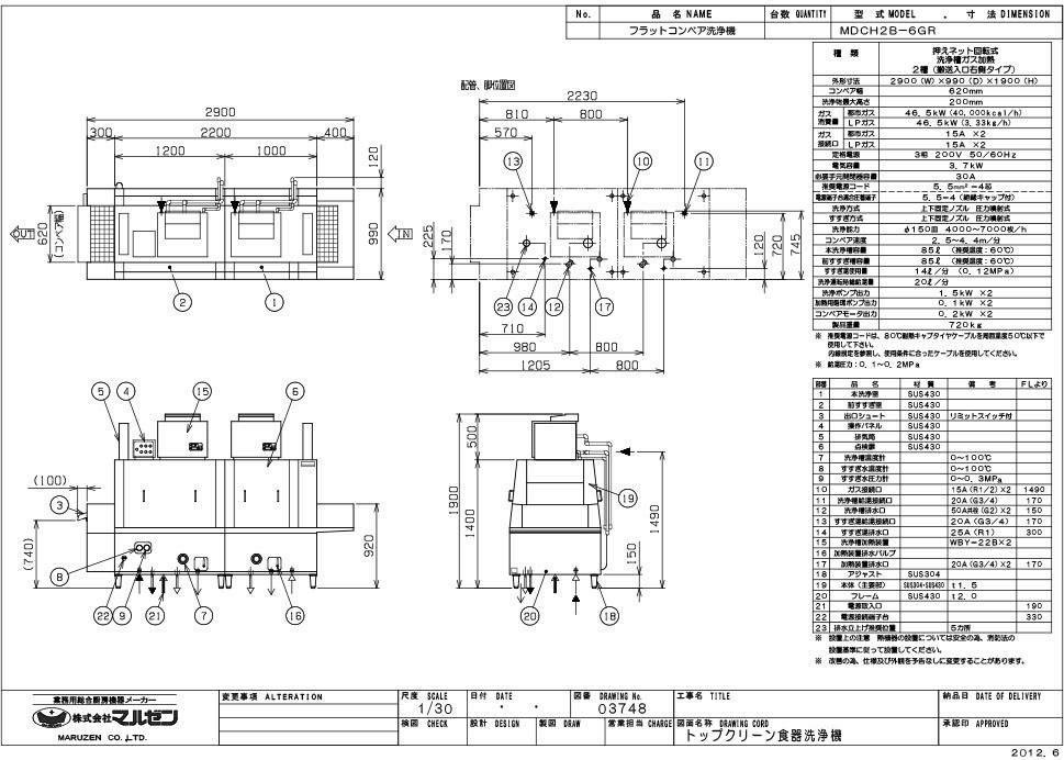 MDCH2B-6GR 【マルゼン】フラットコンベア洗浄機 幅2900×奥行990×高さ1900 三相200V 50/60Hz