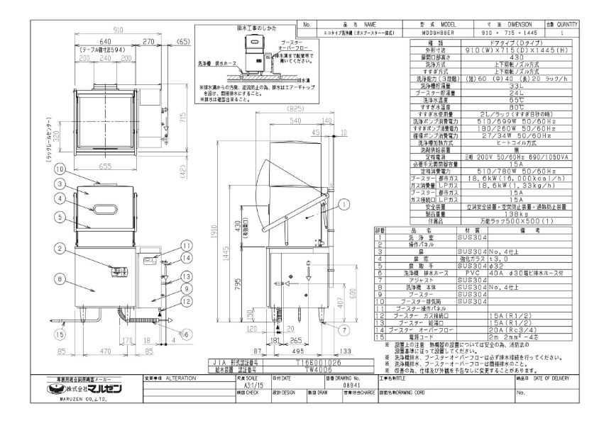 外形寸法:幅910×奥行715×高さ1445(mm)