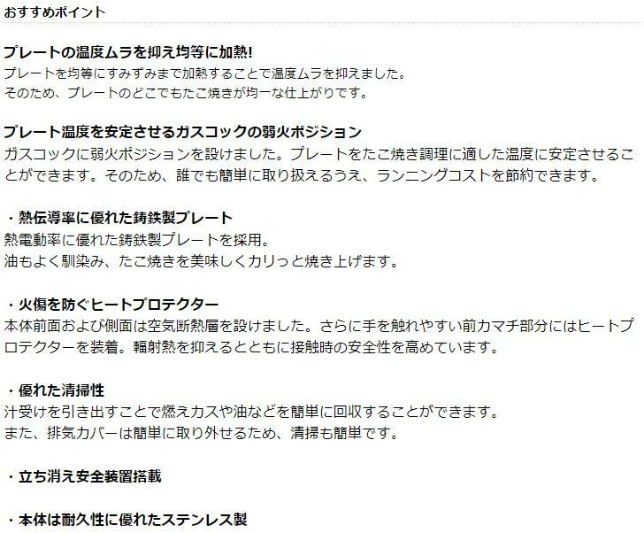 そのため、プレートのどこでもたこ焼きが均一な仕上がりです。