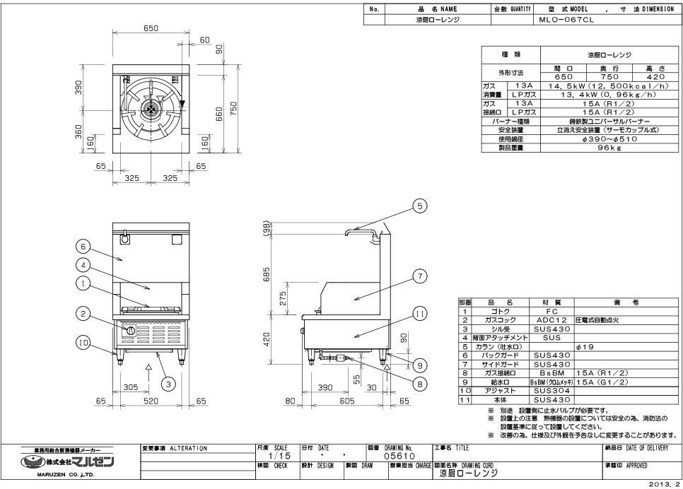 【マルゼン】涼厨ローレンジ MLO-067CL 幅650×奥行750×高さ420