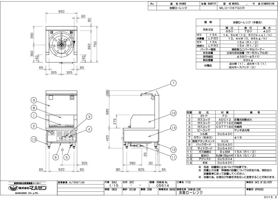 【マルゼン】涼厨ローレンジ MLO-067GCR 幅650×奥行750×高さ420