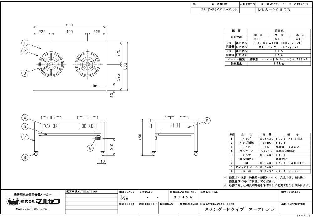 【マルゼン】スープレンジ スタンダードタイプ MLS-096CB 幅900×奥行600×高さ450
