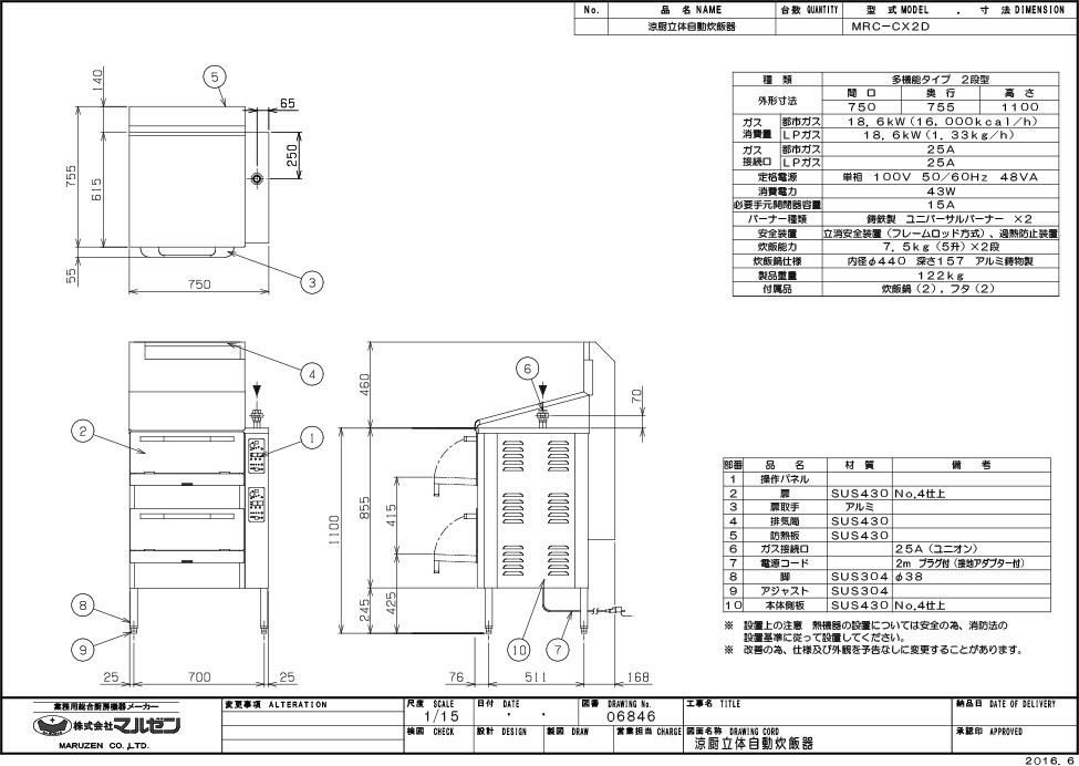 【マルゼン】涼厨立体自動炊飯器 MRC-CX2D 幅750×奥行755×高さ1100 単相100V 50/60Hz 48VA
