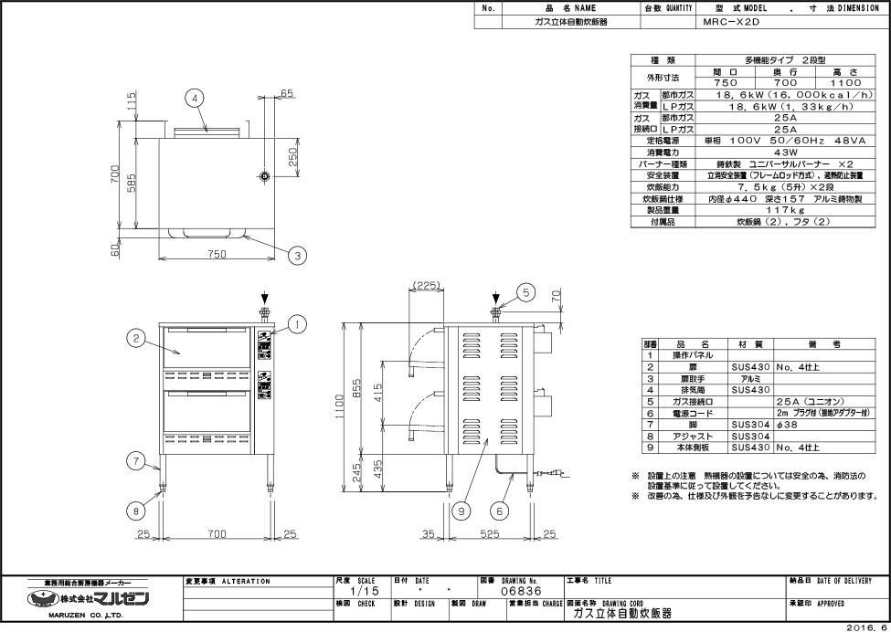 【マルゼン】ガス立体自動炊飯器 MRC-X2D 幅750×奥行700×高さ1100