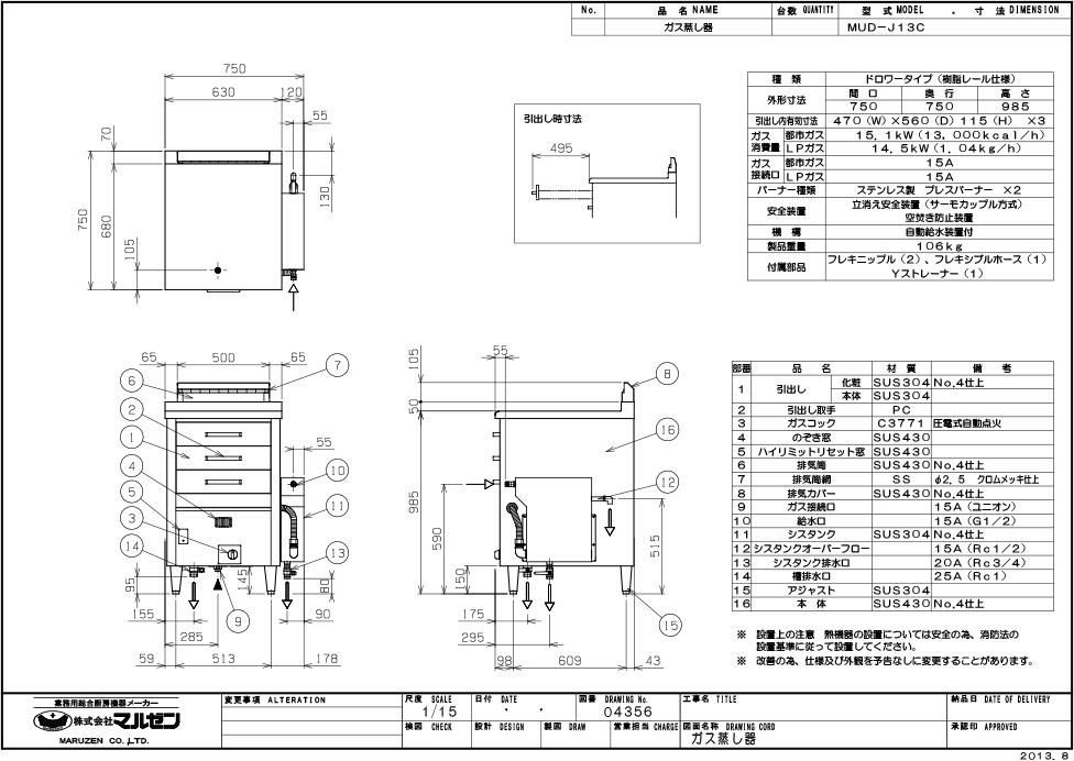 商品名:ガス蒸し器 ドロワータイプ MUD-J13C