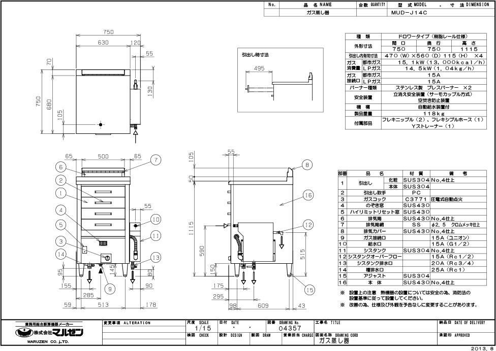 商品名:ガス蒸し器 ドロワータイプ MUD-J14C