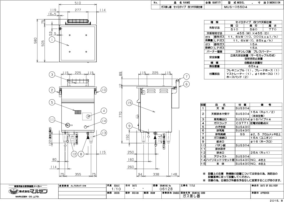 【マルゼン】ガス蒸し器 セイロタイプ MUS-055D4 幅510×奥行580×高さ770