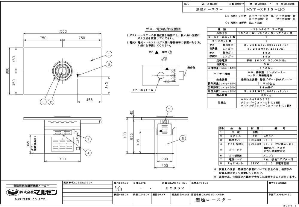 【マルゼン】無煙ロースター ロストル仕様 MYT-RF15 幅1500×奥行900×高さ700 単相100V 50/60Hz