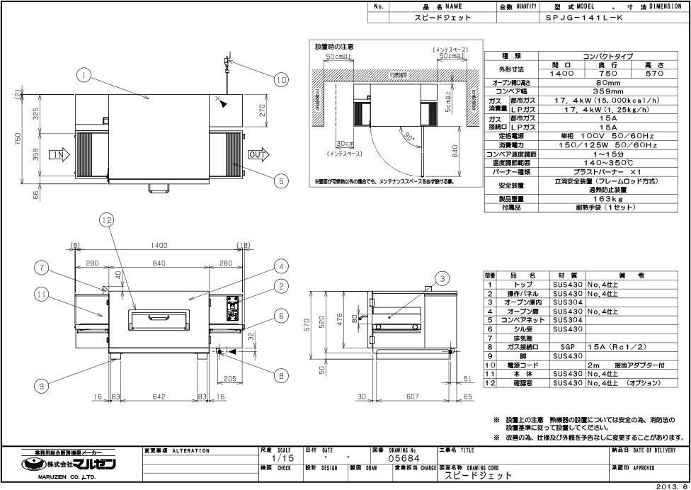 商品名:ガスコンベアオーブン SPJG-141L-K