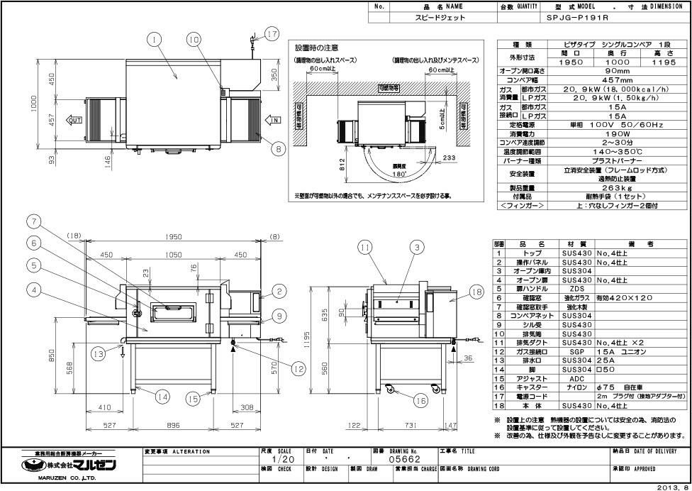 商品名:ガスコンベアオーブン ピザタイプ SPJG-P191R
