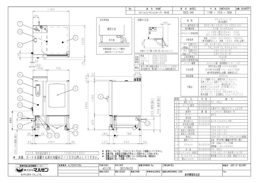 商品名:マルゼン スチームコンベクションオーブン スーパースチーム デラックスシリーズ ガス式/SSCG-24D/W1150×D1015×H1550(mm)
