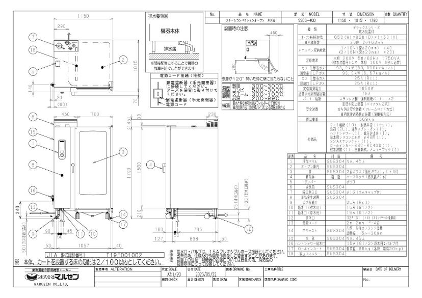 商品名:マルゼン スチームコンベクションオーブン スーパースチーム デラックスシリーズ ガス式/SSCG-40D/W1150×D1015×H1790(mm)