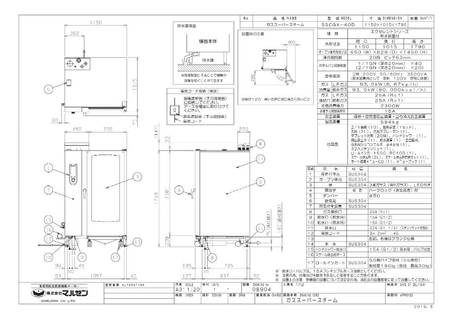 商品名:マルゼン スチームコンベクションオーブン スーパースチーム エクセレントシリーズ 低輻射ガス式/SSCGX-40D/W1150×D1015×H1790(mm)