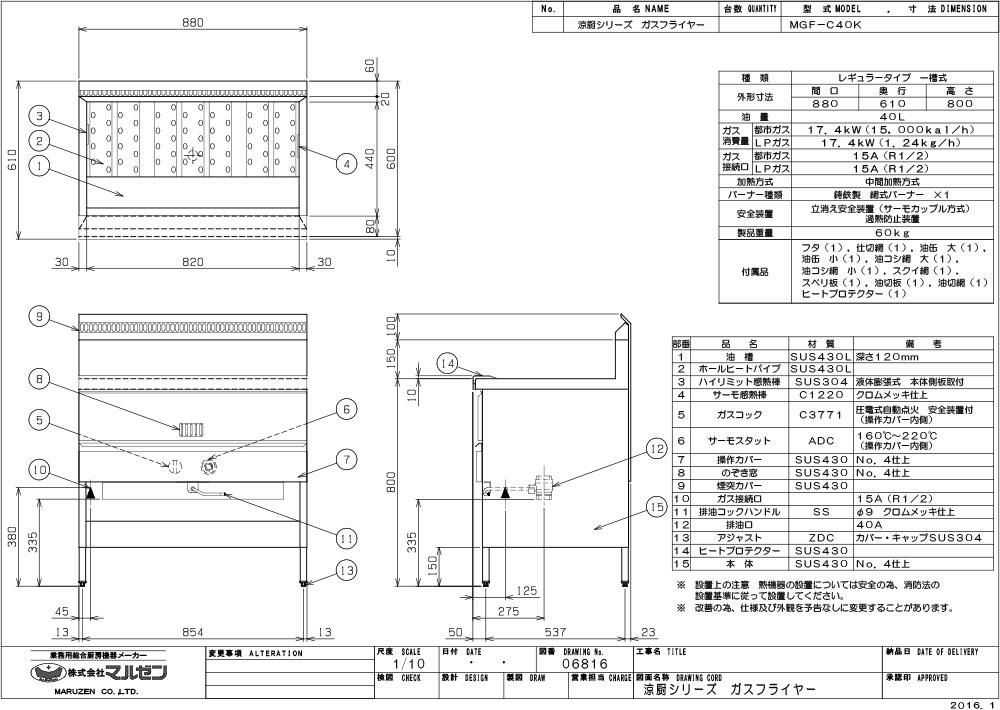 MGF-C40K 【マルゼン】 涼厨フライヤー 40L 幅880×奥行610×高さ800