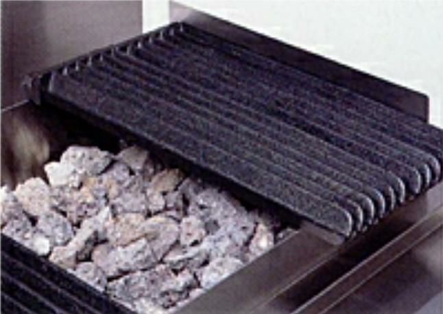 強力バーナーがヒートロックを加熱。赤く焼けたヒートロックが炭火焼の効果を発揮し、焼き目も美味しい、