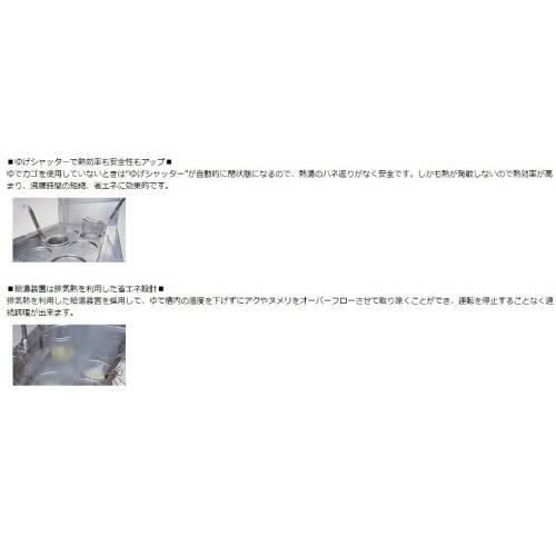 ■給湯装置は排気熱を利用した省エネ設計■ 排気熱を利用した給湯装置を採用して、ゆで槽内の温度を下げずにアクやヌメリをオーバーフローさせて取り除くことができ、運転を停止することなく連続調理が出来ます。
