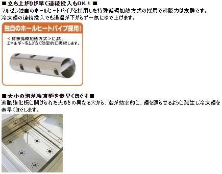 マルゼン独自のホールヒートパイプを採用した特殊循環加熱方式の採用で沸騰力は抜群です。