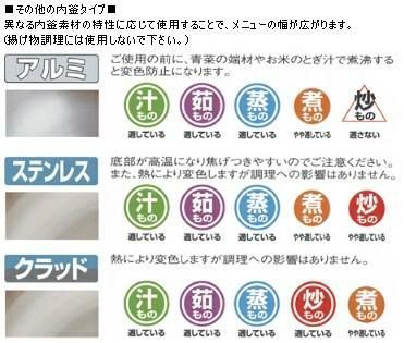 異なる内釜素材の特性に応じて使用することで、メニューの幅が広がります。