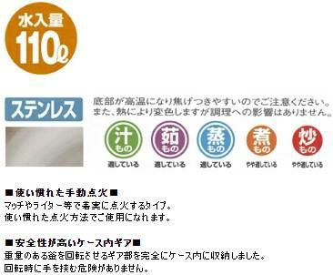 商品名:ガス回転釜 110L W1360×D967×H810 ステンレス製