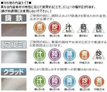 異なる内釜素材の特性に応じて使用することで、メニューの幅が広がります。